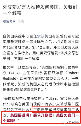 并且让我感到眼前一亮的是,我们首次主动质疑病毒起源于美国的可能性。