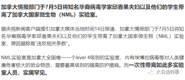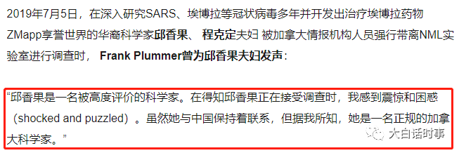 首先一个巧合,就是2019年7月5日,加拿大抓走了华裔病毒科学家邱香果夫妇以及他们的学生;