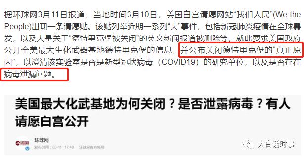 这个请愿贴直接把矛头对准了美国陆军在德特里克堡的传染病研究所,质疑其是否存在病毒泄露问题。